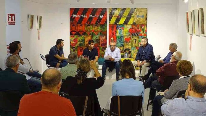 Por la mañana en el Centro Cultural El Recreo en la exposición de Salvador Samper tenía lugar la mesa redonda ¿Nos interesa el Arte? Con la participación del pintor Salvador Samper; el comisario de exposiciones, Tomás Verdugo; el doctor en Bellas Artes y pintor, Enrique Pedrero; el director de la Galería de Arte Marmurán, Ángel Maroto; el concejal de Cultura, José Ángel Escudero; y los concejales del grupo VOX, Florencio Toldos y Alberto Nieto.