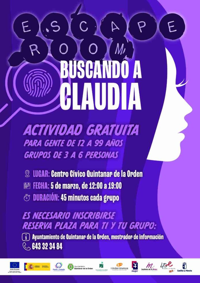 El Ayuntamiento de Quintanar de la Orden, mediante su concejalía de Igualdad y del Centro de la Mujer, puso en marcha la actividad «Escape Room: buscando a Claudia» con el objetivo de sensibilizar sobre igualdad y violencia de género entre los vecinos y vecinas.