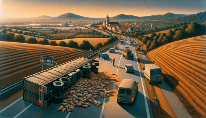 La carretera CM-4202, ubicada en Almodóvar del Campo, Ciudad Real, ha sido reabierta al tráfico después de haber permanecido cerrada debido a un accidente ocurrido el pasado viernes. Un camión cargado de sacos de pienso volcó, obstruyendo completamente la calzada y generando complicaciones en la circulación vehicular.