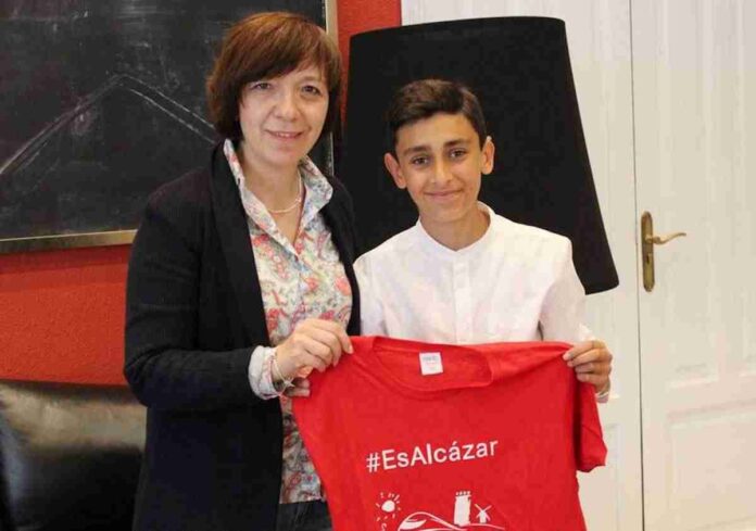 En reconocimiento a su esfuerzo, la alcaldesa de Alcázar de San Juan, Rosa Melchor, lo recibió en su despacho y le entregó una camiseta de #EsAlcázar «para que sepa que cada vez que juega no está solo en la pista, sino que con él estamos todos los vecinos y vecinas de Alcázar».