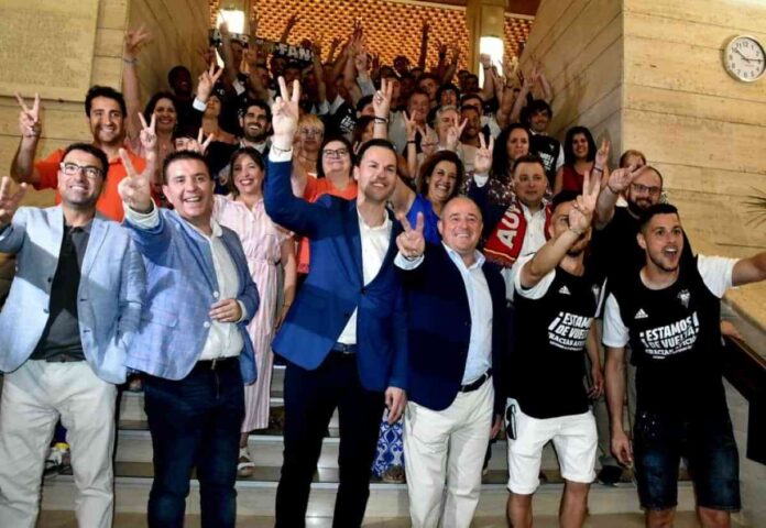 Un recibimiento oficial a la ‘familia’ del Albacete Balompié tras el ansiado ascenso a Segunda División, alcanzado el pasado sábado frente al Deportivo de la Coruña, en Riazor, se ha celebrado con la presencia del presidente de la Diputación de Albacete, Santi Cabañero. Un ascenso del Albacete Balompié, que es una“gesta inolvidable que pasará a la historia deportiva albacetense”.