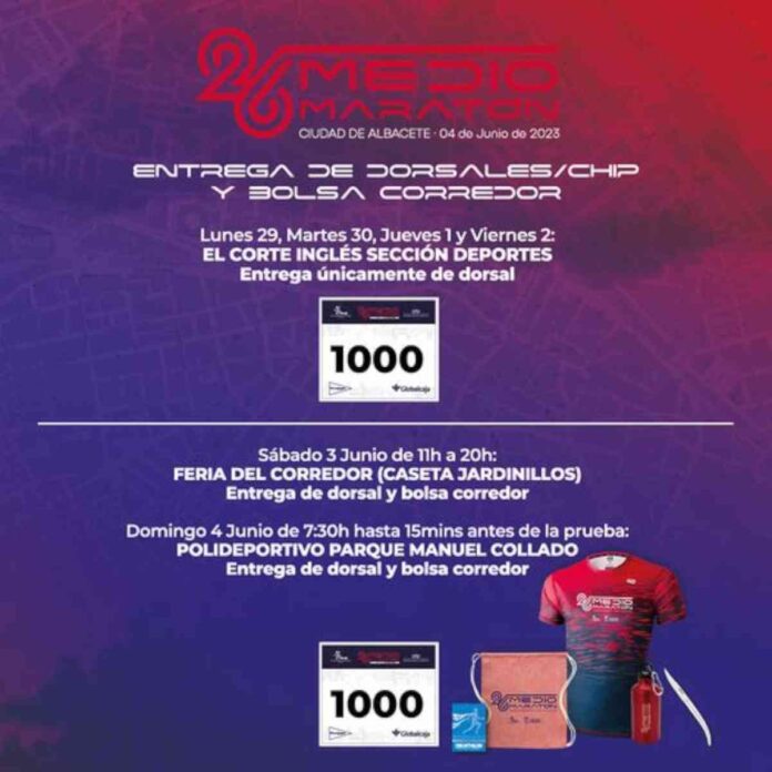 Para la recogida de su bolsa del corredor y dorsal, todos los participantes del 26º Medio Maratón Ciudad de Albacete, pueden elegir entre algunas opciones. Así lo ha dado a conocer el Instituto Municipal de Deportes de Albacete. Tomar nota para participar del evento ¡buena suerte a todos los participantes!
