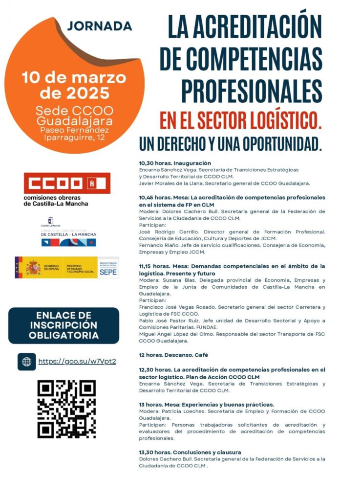 El próximo lunes 10 de marzo, se llevará a cabo en la sede de CCOO en Guadalajara una jornada dedicada a la acreditación de competencias profesionales en el sector logístico. Este evento, organizado por CCOO Castilla-La Mancha, tiene como objetivo central abordar temas relevantes para los trabajadores de este sector, enfatizando la acreditación como un derecho y una oportunidad clave para los profesionales.