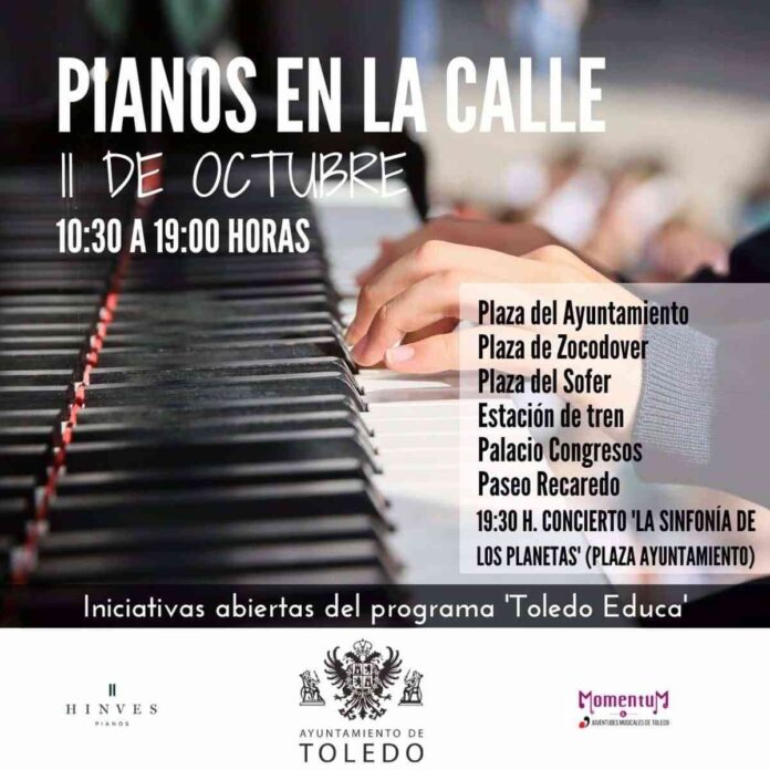 El concejal de Educación y Cultura de Toledo, Teo García, ha avanzado este miércoles una nueva edición de la iniciativa músico-cultural ‘Pianos en la calle’, que se celebrará el martes, 11 de octubre, de 10.30 a 19.00 horas en seis puntos y escenarios patrimoniales de la ciudad.