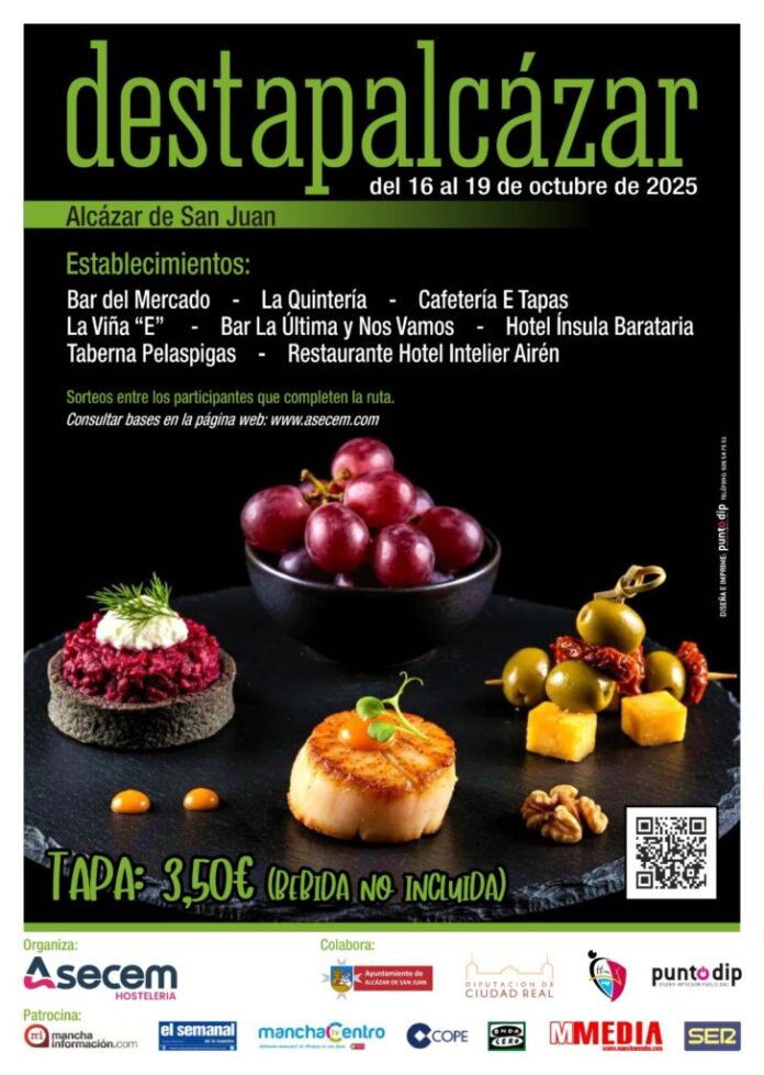 Ocho establecimientos participan en esta edición: Bar del Mercado, La Quintería, Cafetería E Tapas, La Viña “E”, Bar La Última y Nos Vamos, Hotel Ínsula Barataria, Taberna Pelaspigas y Restaurante Hotel Intelier Airén. Cada local ofrecerá una tapa original que refleja su talento y perfil culinario, consolidando a Alcázar de San Juan como un destino gastronómico de referencia en Ciudad Real.