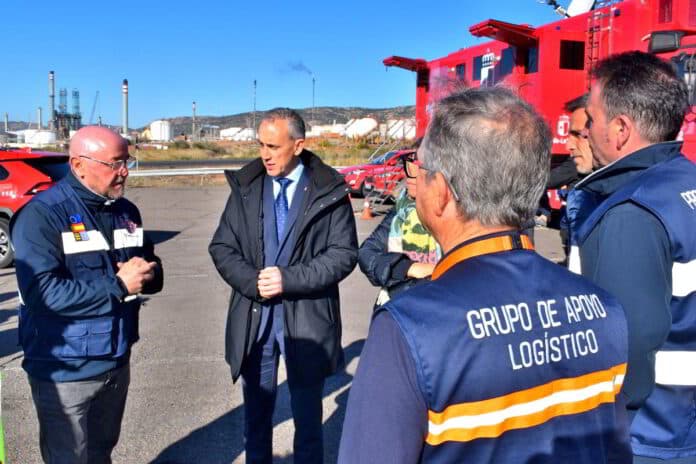 Cerca de un centenar de efectivos participaron en este ejercicio práctico, que incluyó la movilización del puesto avanzado del 112. Durante el simulacro, se activó el Plan de Emergencia Interior de la factoría, permitiendo una primera intervención por parte del personal de Repsol mediante el uso de hidrantes y sistemas de detección y extinción de incendios, según explicó Manuela Pizarro, responsable de la planta. Además, se contó con el apoyo del personal de seguridad del complejo, que dispone de vehículos con capacidad de respuesta rápida y dos ambulancias.