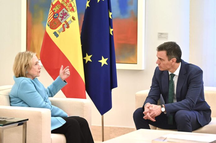 El presidente del Gobierno Español, Pedro Sánchez, se reunió con la exsecretaria de Estado de Estados Unidos, Hillary Clinton, en La Moncloa, Madrid, para discutir varios temas de interés global. Durante el encuentro, Sánchez y Clinton abordaron la emergencia climática, haciendo hincapié en los acuerdos logrados durante la COP28. También trataron el tema de la igualdad de género y el compromiso del Gobierno de España en integrar esta perspectiva en todas sus políticas.