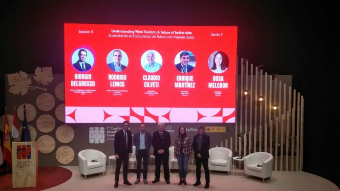 Una mesa que Rosa Melchor ha compartido con Giorgio Delgrosso, jefe del Departamento de Estadística y Transformación Digital en la Organización Internacional de la Viña y el Vino (OIV); Rodrigo Lemos, coordinador de Turismo Vitivinícola de la Corporación Vitivinícola Argentina; Claudio Cilveti, presidente de la Asociación Enoturismo de Chile; y Enrique Martínez, presidente de la Sociedad Estatal para la Gestión de la Innovación y las Tecnologías Turísticas (Segittur).