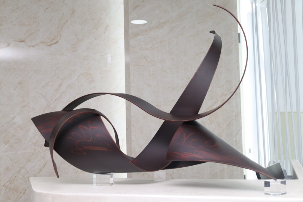 Por su parte, Joaquín Llorens compartió con los asistentes su proceso creativo para dar vida a ‘Sorolla’. Con una carrera de más de cuarenta años en la escultura, Llorens describió su obra como “un diario hecho en hierro”, reflejo de su evolución artística hacia un estilo más abstracto y minimalista. Explicó que su conexión con el Mediterráneo fue la fuente de inspiración para la pieza, la cual nace de sus vivencias personales con el mar y su deseo de explorar el movimiento y la luz. ‘Sorolla’ forma parte de una serie de cinco esculturas, de las cuales dos ya han sido premiadas en otros certámenes.