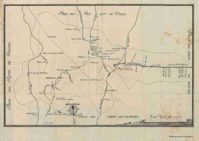 Y en las Relaciones Topográficas de Felipe II, año 1575, correspondientes a Argamasilla de Alba vemos lo siguiente “…dos leguas de esta villa arriba se toma el agua y viene encazado y pasa por esta dicha villa el dicho caz, y va adelante tres leguas encazado…continuando desde allí a otros molinos…”. Sin duda se refiere a los de la Membrilleja, el Cuervo y del Tejado situados aguas abajo de Argamasilla.
