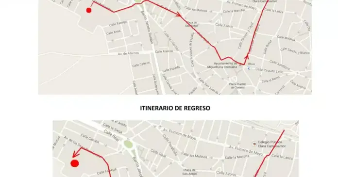 En cuanto al itinerario urbano de llegada de la prueba deportiva, será a través del Camino de las Minas, Puente de San Isidro, Ramón y Cajal, Plaza de la Constitución por delante de la puerta principal de la iglesia, calle Don Miguel Astilleros, Cristo, San Juan de Ávila, Pardillo, avenida del Pardillo, Amelgares, avenida de los Descubrimientos y entrada al Estadio Municipal.
