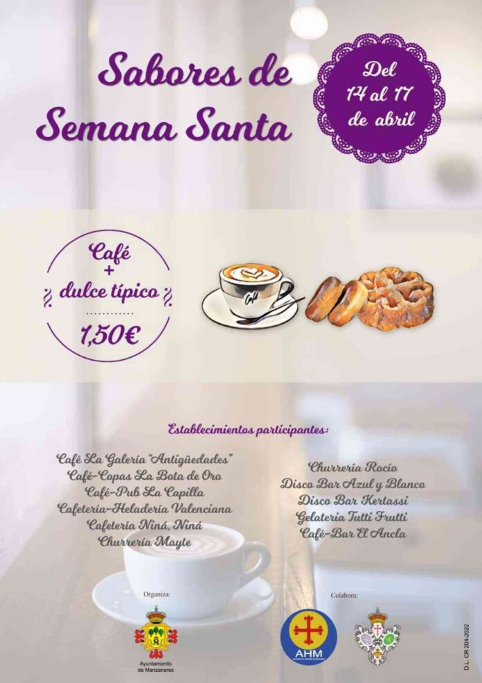 Vuelven los “Sabores de Semana Santa” a Manzanares (Ciudad Real) luego de la exitosa acogida que tuvieron el año anterior pese a la pandemia por el covid-19. Y desde el Jueves Santo al Domingo de Resurrección se podrán disfrutar especiales sabores en once establecimientos donde se pueden degustar los dulces típicos de las fechas junto a un especial café.