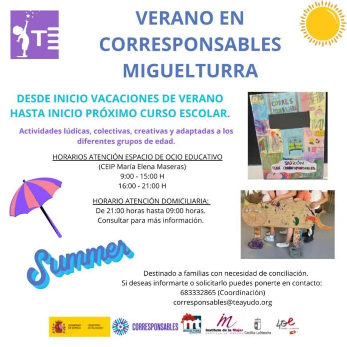 La prestación del servicio del Plan Corresponsables para conciliar la vida familiar y laboral se brindará durante todo el período no lectivo de las vacaciones escolares a las familias de Miguelturra (Ciudad Real) con menores de 3 a 12 años a su cargo. Así lo ha dado a conocer el Centro de la Mujer, dependiente del área de Igualdad.