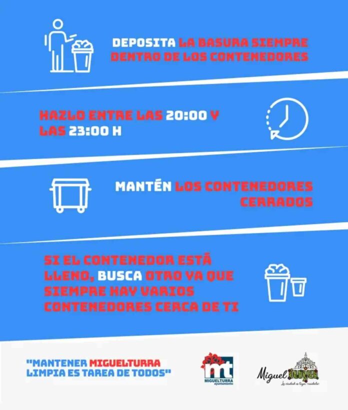 No obstante, desde la concejalía de Desarrollo Urbano queremos hacer un llamamiento a la ciudadanía para que también colabore. Solo con la concienciación de todos podemos conseguir que la limpieza en las calles y en los alrededores de los contenedores sea la idónea; la campaña, llamada «Miguelturra más limpia es patrimonio de tod@s» está fundamentada en imágenes con eslóganes para motivar/concienciar en este sentido, que están presentes tanto al final de esta noticia como circulando por las redes sociales del Ayuntamiento en Facebook, Google My Business y Twitter.