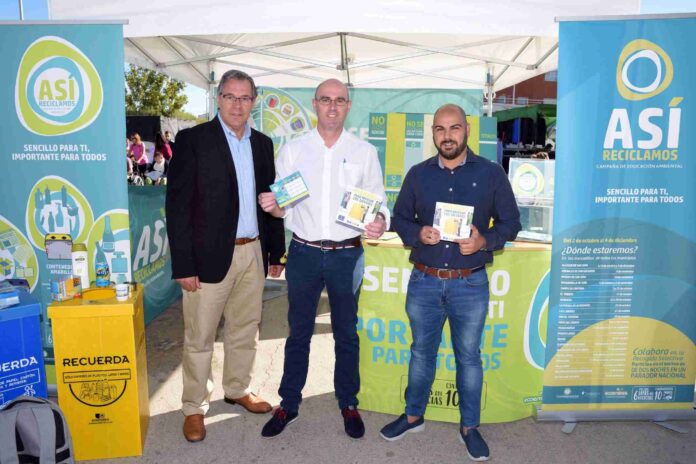 El presidente de Comsermancha, Pedro Ángel Jiménez, y el alcalde accidental de Tomelloso, Francisco José Barato, han participado este lunes en el inicio de la II Campaña de Educación Ambiental sobre separación selectiva de residuos de envases en mercadillos y espacios públicos, que ha tenido lugar en el mercadillo de la localidad, puesta en marcha por la Mancomunidad de servicios Comsermancha junto a Ecoembes, a través de la empresa OMBION, que recorrerá las localidades del ámbito de actuación de la Mancomunidad hasta el 4 de diciembre.