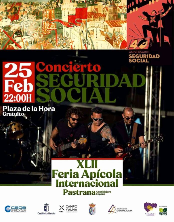 El concierto del grupo Seguridad Social, previsto para el 25 de febrero, dará el pistoletazo de salida a la programación de actos de la Apícola Internacional, que se desarrollará en Pastrana del 2 al 5 de marzo