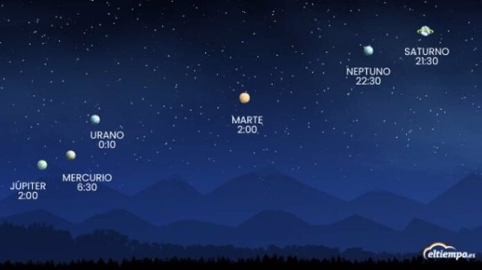 Este miércoles, los amantes de la astronomía en España tendrán la oportunidad de presenciar un fenómeno excepcional que permitirá observar simultáneamente seis planetas del sistema solar: Mercurio, Marte, Júpiter, Saturno, Urano y Neptuno. Este evento, que no se volverá a repetir en la próxima década, comenzará a ser visible a partir de las 21:30 horas (hora peninsular).