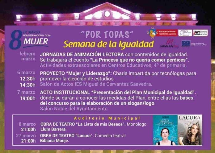 Coincidiendo con la celebración del Día Internacional de la Mujer, el 8 de marzo, el ayuntamiento de Alcázar de San Juan ha organizado la Semana de la Igualdad «Por Todas». En los actos se incluye la presentación del Plan Municipal de Igualdad 2019-2012 que recoge una serie de medidas para conseguir la igualdad real y eliminar las discriminaciones.