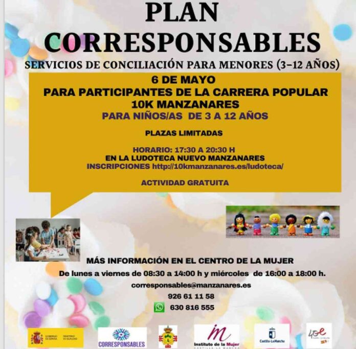 El Servicio de conciliación para menores (3 a 12 años) del Plan Corresponsables se brindará el 6 de mayo para participantes de la Carrera Popular 10K que tendrá lugar este 6 de mayo en Manzanares (Ciudad Real).
