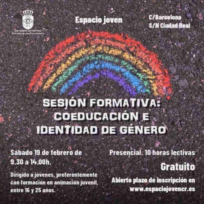 Este sábado 19 de febrero se llevará a cabo la sesión formativa “Coeducación e identidad de género” de 9:30 a 14 horas en el Espacio Joven de Ciudad Real, en C/Barcelona, s/n.