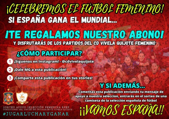 Si la Selección Española de Fútbol Femenino de la Real Federación Española de Fútbol gana el mundial de fútbol femenino organizado por la FIFA, el próximo domingo 20 de Agosto, el CD VivELA Quijote regalará el abono de su equipo femenino a todos los seguidores de su perfil oficial en la red social Instagram que ayuden en la difusión del fútbol femenino.