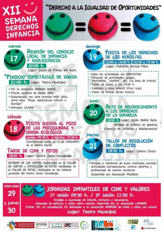 Las actividades están pensadas para trabajar en familia y para que los más pequeños sean los protagonistas. Este año se ha trabajado en el Derecho a la igualdad de oportunidades en los talleres que se han realizado en los centros educativos y gracias a la aprobación del manifiesto en el plenario del pasado mes.