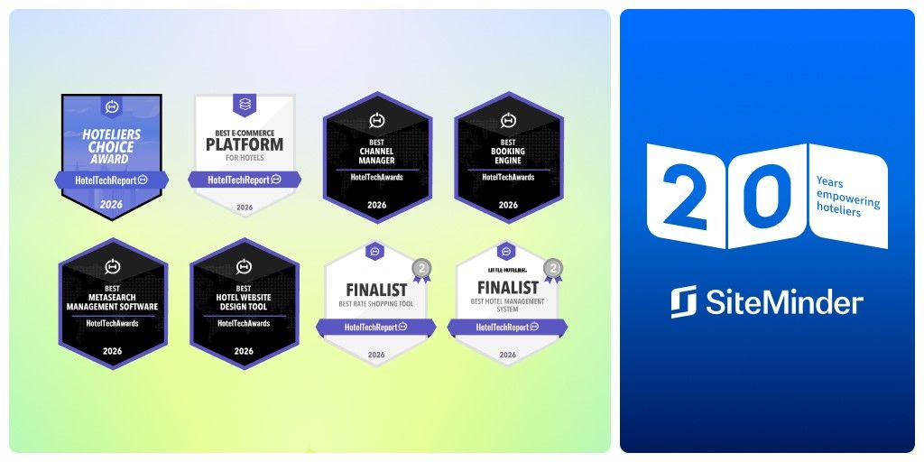 SiteMinder se enorgullece de haber sido reconocido por quinto año consecutivo con el ‘Hotelier’s Choice Award’ y por cuarto año seguido como la ‘Best Hotel eCommerce Platform’ en los HotelTechAwards 2026. Estos premios son un reconocimiento al arduo trabajo, la innovación constante y el compromiso con la excelencia en el servicio por parte de todo el equipo de SiteMinder.