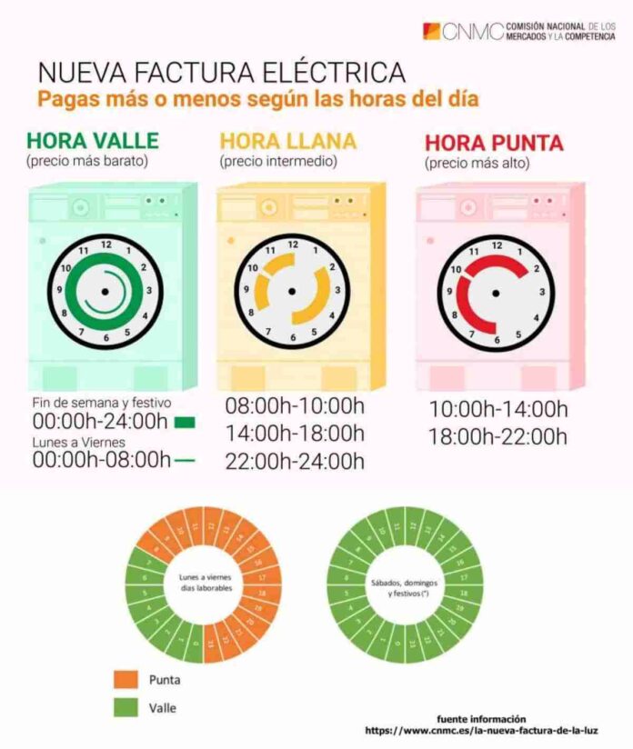 El periodo de punta: con el precio más elevado, de 10 de la mañana a 2 de la tarde y de 6 de la tarde a 10 de la noche de lunes a viernes no festivos.