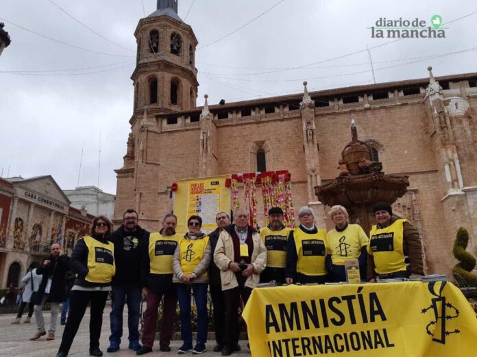 El grupo de acción de Amnistía Internacional se ha movilizado este sábado en la Plaza de España de Valdepeñas para recoger más de 200 mensajes con buenos deseos destinados a cinco casos emblemáticos de lucha por los derechos humanos en China.