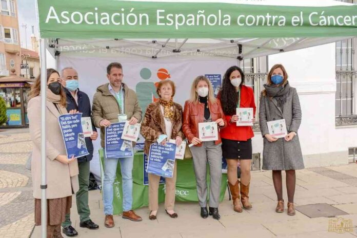Con motivo del Día Mundial Contra el Cáncer de Colon, la Asociación Española Contra el Cáncer ha instalado una mesa informativa en la Plaza de España de Tomelloso (Ciudad Real) hoy 31 de marzo.