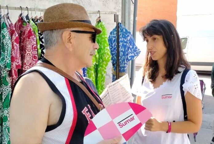 La candidata de Sumar por Toledo, Marta Romero, ha realizado una visita a la localidad de Mocejón, donde ha recorrido las calles y el mercadillo para explicar su programa y dialogar con los vecinos.
