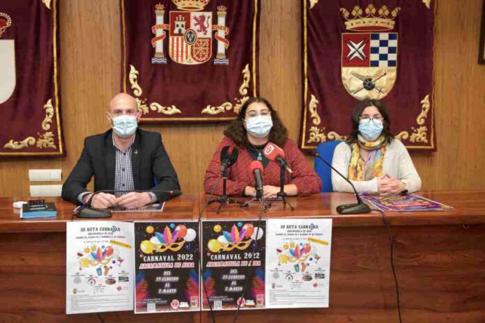 El alcalde de Argamasilla de Alba (Ciudad Real), Pedro Ángel Jiménez, y la concejala de Festejos, Alba Hilario, junto a la técnica de Juventud y Festejos, Silvia Carrasco, han presentado este jueves los actos que con motivo de la celebración del Carnaval 2022 se han programado en Argamasilla de Alba, los cuales tendrán lugar entre los días 25 de febrero y 2 de marzo.