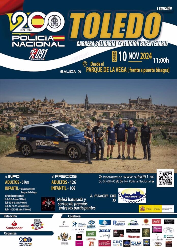 La Carrera Solidaria Ruta 091, organizada por la Jefatura Superior de Policía de Castilla-La Mancha en celebración del Bicentenario de la Policía Nacional, tendrá lugar en Toledo el próximo 10 de noviembre. Este evento tiene como propósito recaudar fondos que serán destinados a la Federación Provincial de Entidades Pro Personas con Discapacidad Intelectual y Parálisis Cerebral de Toledo, conocida como Marsodeto.