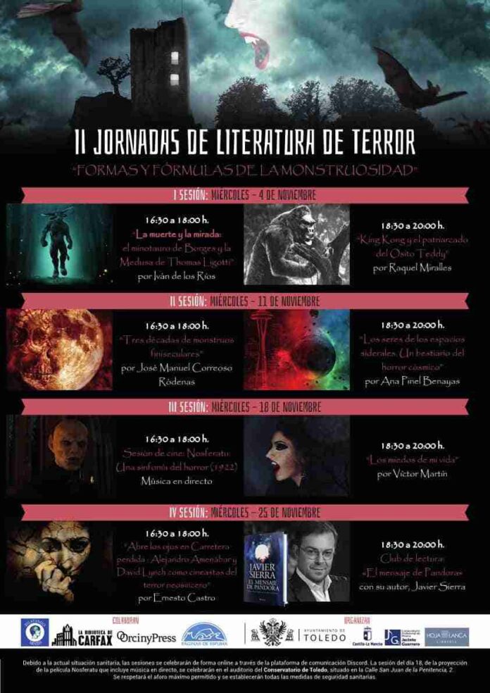 El Ayuntamiento de Toledo, a través de la Concejalía de Cultura y Educación, ha respaldado por segundo año consecutivo las II Jornadas de Literatura de Terror que llevan por título: ‘Formas y fórmulas de la monstruosidad y en línea para salvar las dificultades inherentes de una situación sociosanitaria complicada’ y que han sido organizadas por la Asociación Cultural Hojablanca.