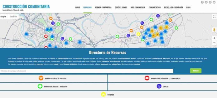 En el Directorio, los diferentes recursos se pueden identificar de cuatro formas diferentes: a través de un listado alfabético y de un mapa, en el que aparecen todos; buscando directamente por el nombre del recurso, o navegando por las categorías (vinculadas a las líneas de trabajo del proceso: Barrio educador por la convivencia; Barrio saludable e inclusivo; Barrio diverso en positivo; Vivienda; Empleo) y subcategorías (vinculadas a la naturaleza de los recursos).