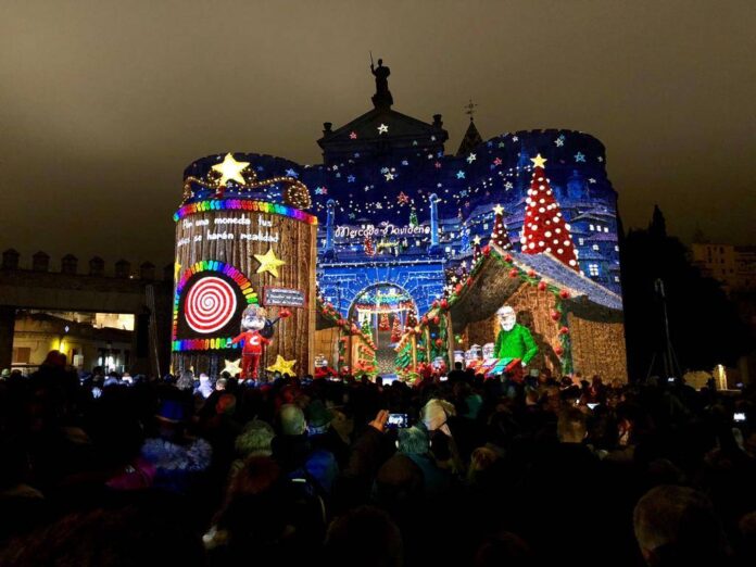 Es la tercera vez que se celebra este espectáculo de luz y sonido en la ciudad durante la navidad.es»>Navidad. En esta ocasión, el montaje narraba la historia de la pequeña Cristi y la máquina de los sueños.