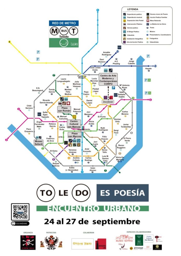 El encuentro urbano se desarrollará también en otros tantos espacios de la ciudad como la plaza de san Román, plaza del Salvador, Museo Sefardí y el Centro de Arte Moderno y Contemporáneo de Castilla-La Mancha CORPO (Colección Roberto Polo). Habrá también una acción poética que recorrerá las calles del Casco Histórico desde la plaza de Zocodover hasta el Salvador.