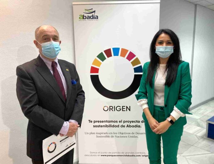 El concejal de Promoción Económica y Empleo, Francisco Rueda, y la gerente del Centro Comercial ‘Abadía’, Raquel Fernández, han presentado este viernes el proyecto ‘Origen’, una iniciativa que nace con el objetico de llevar a cabo más de 40 acciones para impulsar el cambio sostenible, social, medioambiental y económico de la ciudad de Toledo y que cuenta con la colaboración del Ayuntamiento, comprometido en su acción con los Objetivos de Desarrollo Sostenible de la ONU.