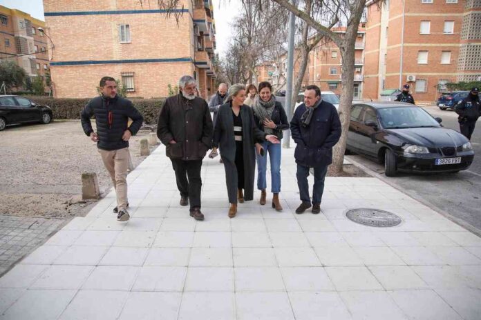La alcaldesa, acompañada por la edil de Obras, Noelia de la Cruz; la edil de Parques y Jardines, Marta Medina, y la edil y presidenta del Consejo de Participación del Polígono, Ana Belén Abellán, ha destacado que la actuación de reparación de aceras y calzadas en estas siete calles surgió después del desastre ocasionado por el temporal de nieve y frío Filomena que dañó sustancialmente el pavimento.