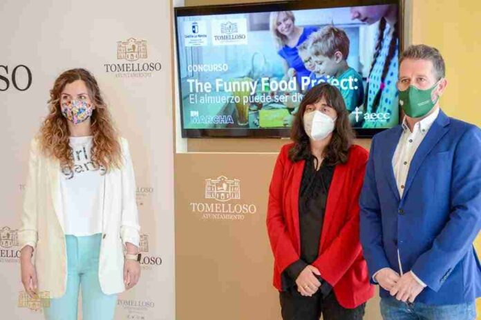 La concejala de Educación del Ayuntamiento de Tomelloso, Nazareth Rodrigo, el gerente de la Asociación Española contra el Cáncer (AECC) en la provincia de Ciudad Real, Miguel Ángel Galindo, y la vicepresidenta de la junta local de la asociación, Mar Morcillo, han hecho un llamamiento a los centros escolares de la localidad para que animen a sus alumnos de primaria a participar en el concurso ‘The Funny Food Project: el almuerzo puede ser divertido’, presentando sus recetas de meriendas saludables.
