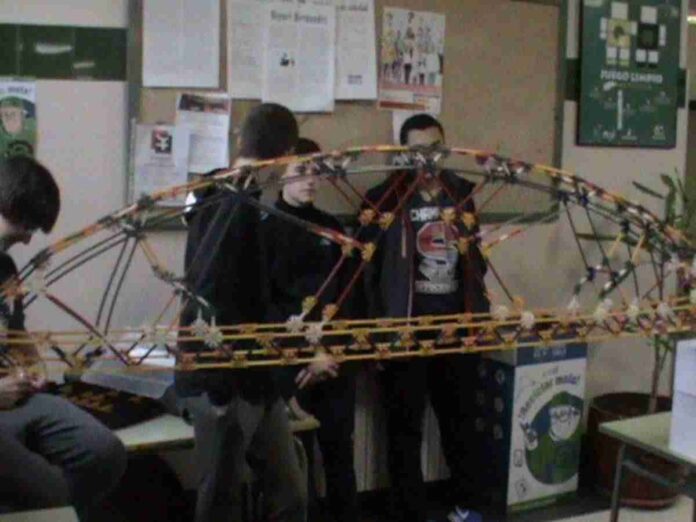 El concurso consiste en diseñar y realizar un puente con la mayor luz posible, 1,80 metros, que sea capaz de resistir el mayor peso posible y que se realice con el menor número posible de piezas.