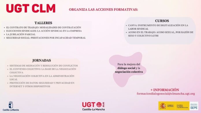 UGT Castilla-La Mancha ha presentado un ambicioso plan de formación destinado a sus delegados y delegadas, que se llevará a cabo durante el año 2025. Esta iniciativa busca fortalecer la acción sindical mediante la organización de una serie de cursos, jornadas y talleres enfocados en proporcionar a los representantes sindicales las herramientas necesarias para mejorar su desempeño y enfrentar los desafíos del entorno laboral actual.