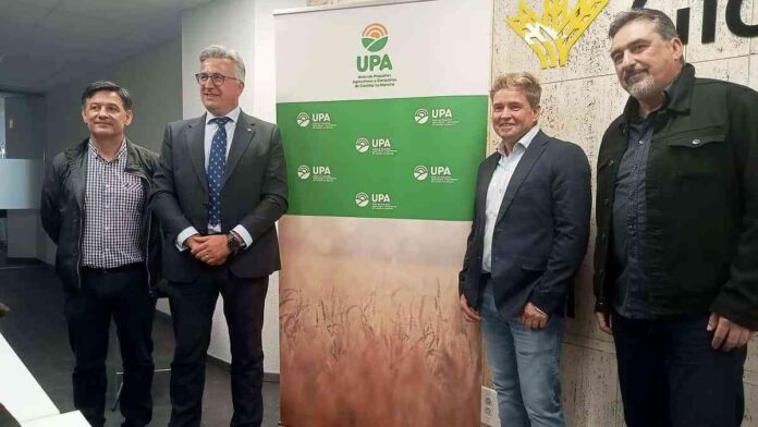 La Unión de Pequeños Agricultores y Ganaderos de Castilla-La Mancha ha presentado al nuevo secretario provincial de UPA en Cuenca en la capital conquense durante la celebración de la asamblea informativa sobre la reforma de la PAC celebrada en la sede de Globalcaja. En el acto han participado Julián Morcillo, secretario general de UPA CLM, Alberto Marcilla, director de Banca Rural de Globalcaja, y el director provincial de Agricultura, Agua y Desarrollo Rural, Joaquín Cuadrado.