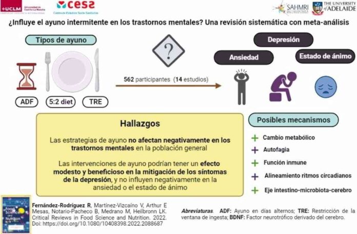 Planteada con el propósito de evaluar las posibles implicaciones del ayuno intermitente en trastornos mentales como la depresión, la ansiedad y el estado de ánimo de la población general, esta revisión sistemática se sustenta sobre ensayos clínicos, incluyendo un total de catorce estudios con 562 participantes, ha informado la UCLM en nota de prensa.