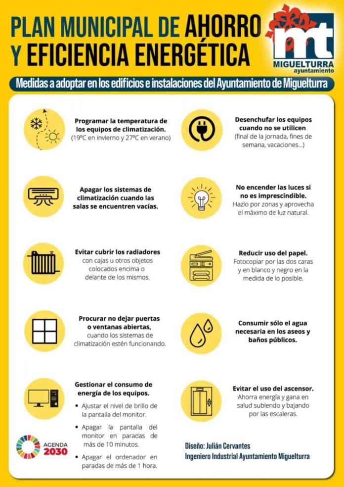Un Plan de Ahorro Energético para los edificios municipales de la localidad, han elaborado las concejalías de Nuevas Tecnologías y Gestión Administrativa, y de Desarrollo Rural y Desarrollo Urbano del ayuntamiento de Miguelturra (Ciudad Real). El mismo tiene como objetivo, contrarrestar la situación actual marcada por el incremento del precio del petróleo, del gas natural y de la energía eléctrica, con el fin de mantener la sostenibilidad presupuestaria, y apostando por medidas estructurales de optimización del consumo energético.