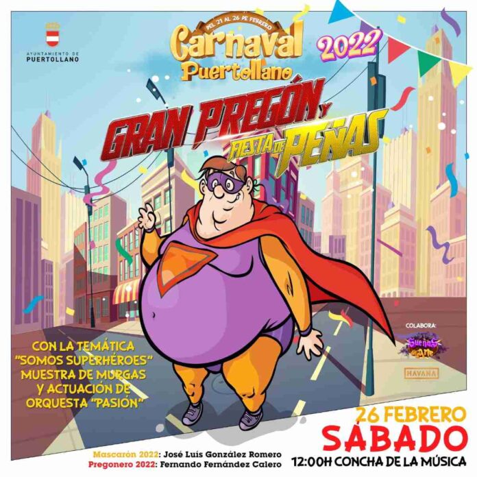 Puertollano tiene su superhéroe para anunciar el esperado Carnaval de Puertollano 2022. Nada menos que un simpático superhéroe puertollanero de andar por casa, que el próximo sábado 26 de febrero anunciará el carnaval, con el pregón y el nombramiento de mascarón carnavalero que abrirá la programación de la Concejalía de Festejos.