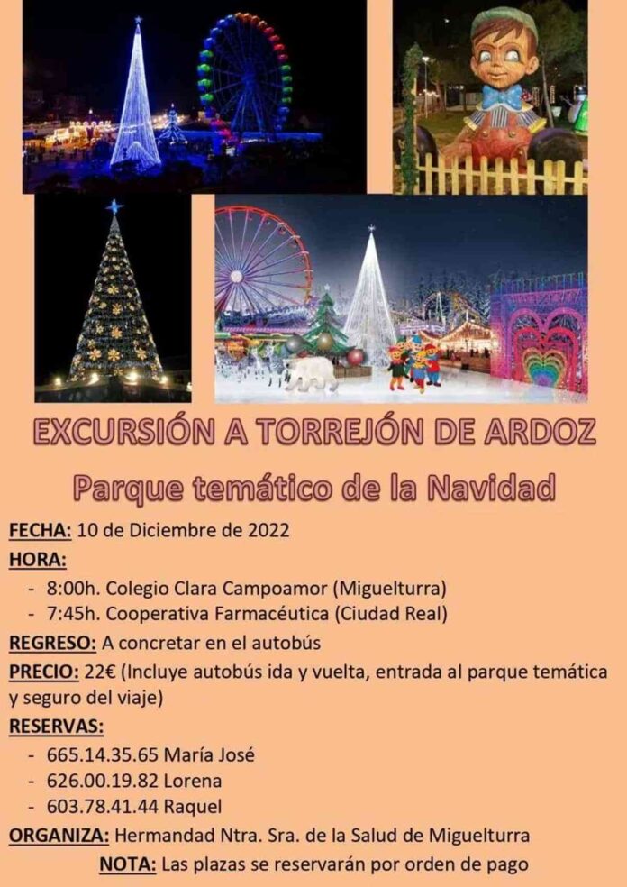Un viaje excursión al parque temático de Navidad en la localidad madrileña de Torrejón Ardoz organiza la Hermandad de Nuestra Señora de la Salud de Miguelturra (Ciudad Real) para el próximo sábado 10 de diciembre de 2022.
