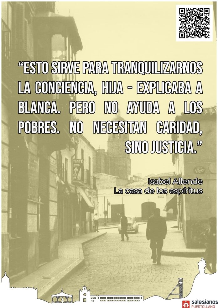 Acompañados con una foto histórica de la calle Aduana, los chicos han leído un fragmento de libro para invitar a la ciudadanía a tomar la iniciativa lectora y continuar con la lectura del libro que ellos ya han comenzado con ese cartel. El cartel está rematado con un pequeño skyline de Puertollano en el que se representan varios monumentos locales.