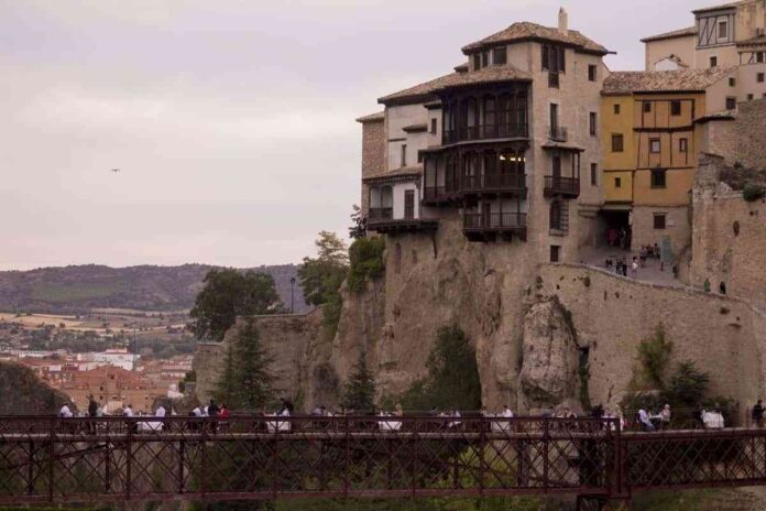 Una cena colgados del patrimonio conquense en el Puente San Pablo y frente a las Casas Colgadas. Esta ha sido la primera acción que se ha puesto en marcha en el arranque de las actividades con las que Cuenca va a promocionar su candidatura para ser Capital Española de la Gastronomía en 2023.