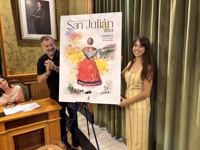 La talentosa artista conquense Esther de la Cruz ha logrado capturar la esencia de la ciudad de Cuenca en su más reciente obra, el cartel anunciador de las fiestas de San Julián 2024. En esta ocasión, De la Cruz ha decidido personificar a la ciudad en una mujer vestida con el traje tradicional de serrana, rindiendo así un homenaje a las raíces y tradiciones de la localidad.